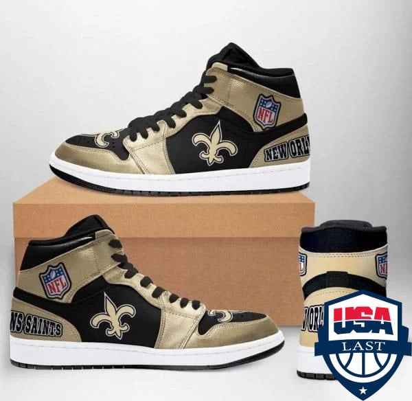 Air JD Hightop Shoes NFL New Orleans Saints Golden Black Logo AJ 1 High Sneakers