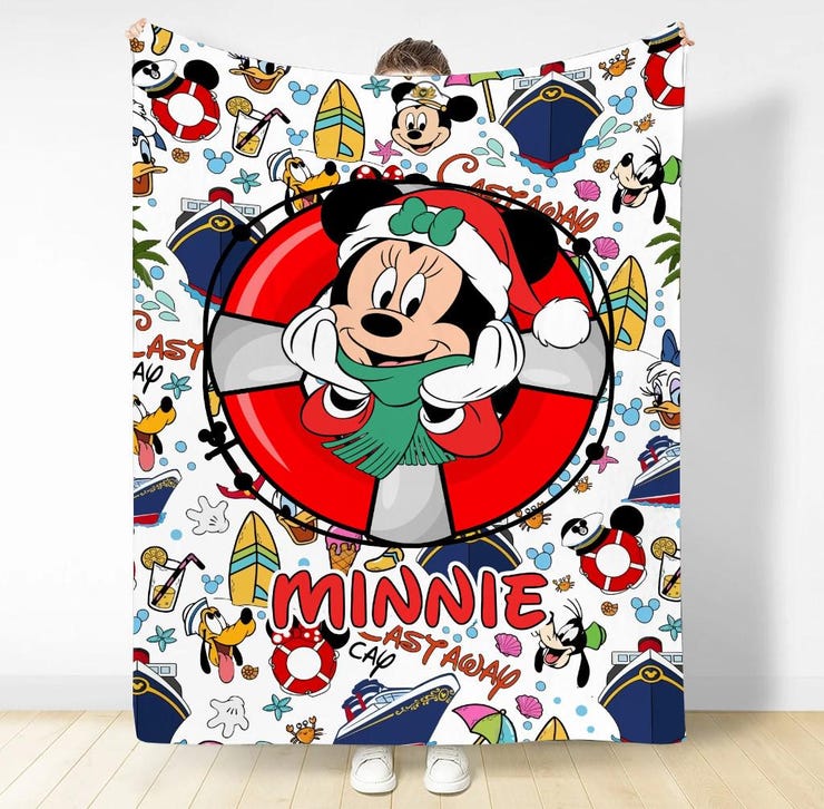 Christmas Minnie Mouse Blanket, Personalized Name Mickey And Friends Blanket, Disney Blanket, Custom Name Christmas Blanket, Baby Gift