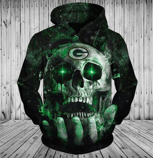 Green Bay Packers 3D Hoodie Go Pack Go Football Skull