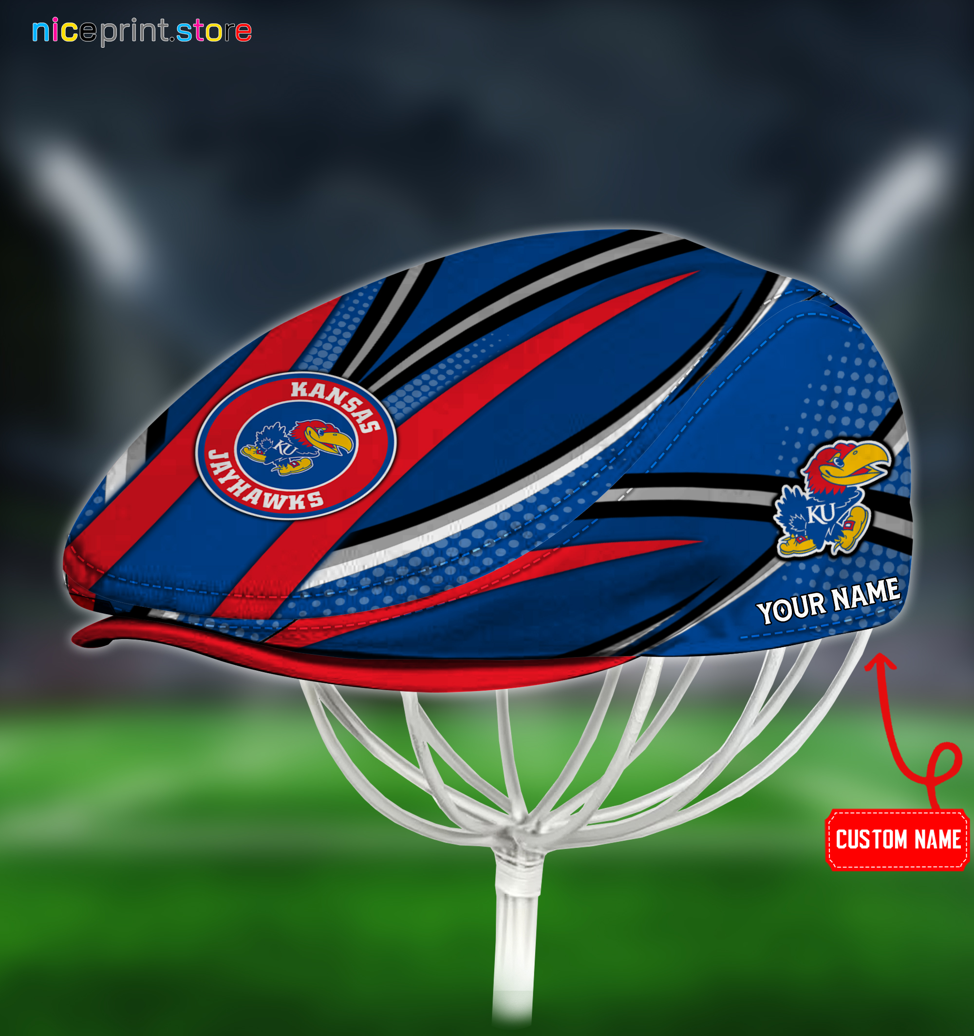 Kansas Jayhawks NCAA Jeff Cap, Flat Cap, Driving Cap M29