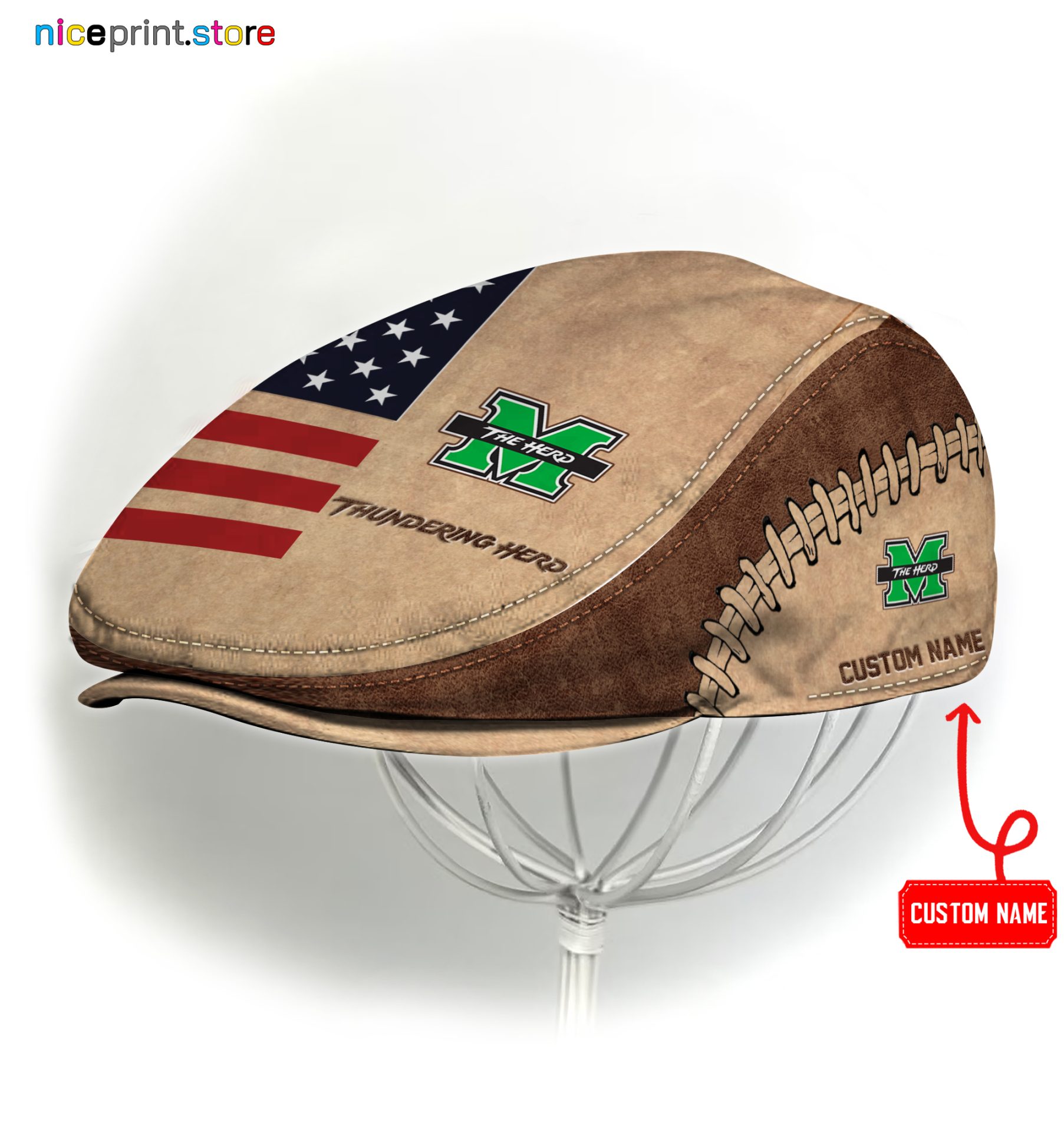 Marshall Thundering Herd NCAA2 Jeff Cap, Flat Cap, Driving Cap M55