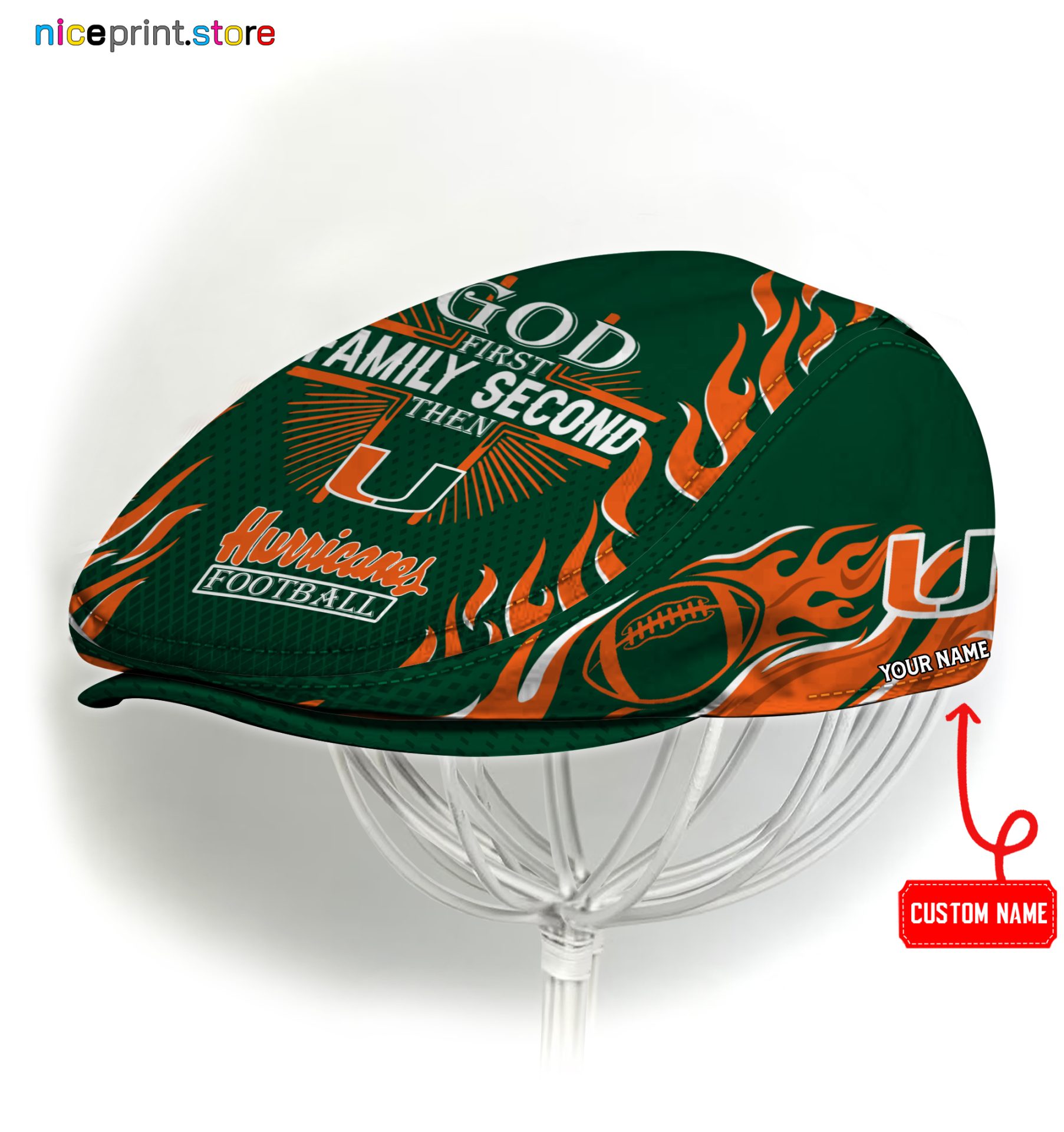 Miami Hurricanes NCAA Jeff Cap, Flat Cap, Driving Cap M47