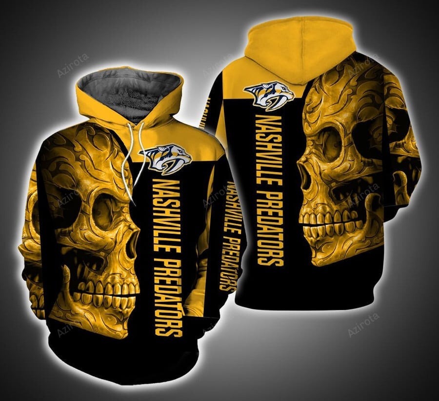 Nashville Predators Black Yellow Skull Pullover Hoodie