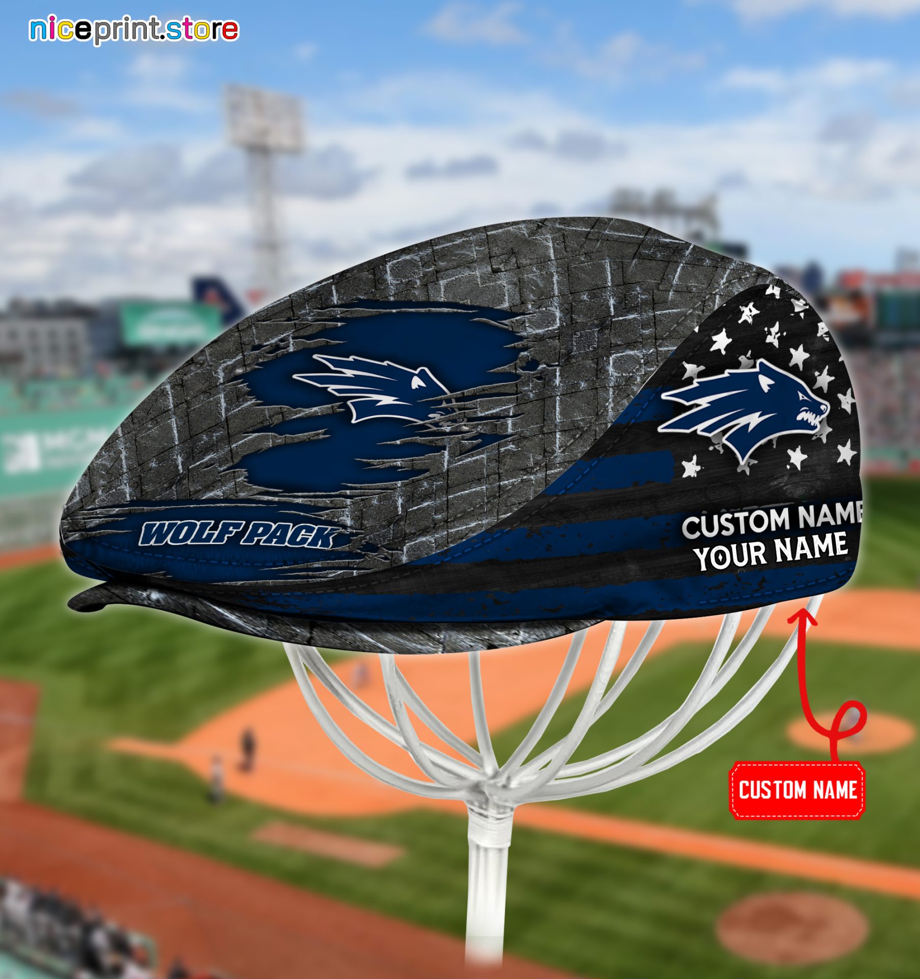 Nevada Wolf Pack NCAA4 Flat Cap, NCAA Jeff Cap, NCAA Driving Cap Q05