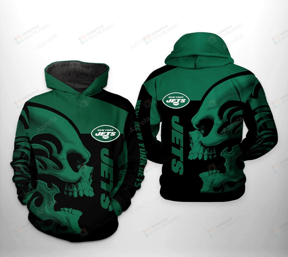 New York Jets Skull 3D All Over Print Hoodie Zip up Hoodie