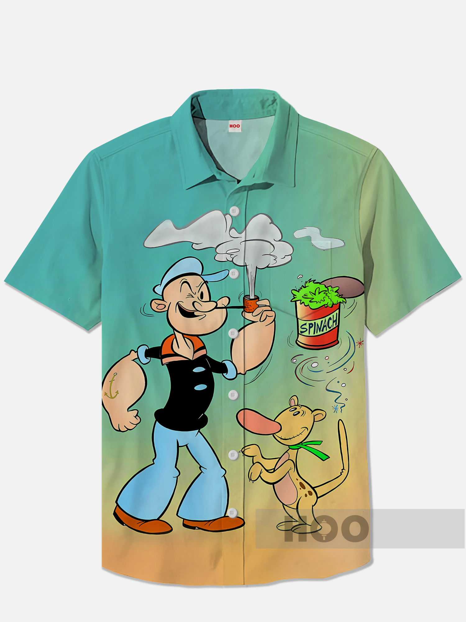 Nostalgic Anime Sailor And Canned Spinach Printing Breast Pocket Hawaii Shirt