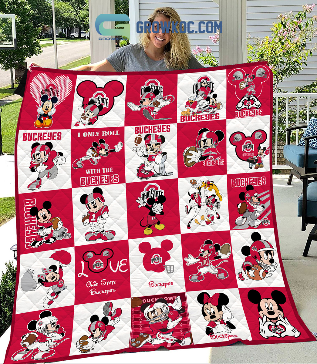 Ohio State Buckeyes NCAA Mickey Disney Fleece Blanket Quilt