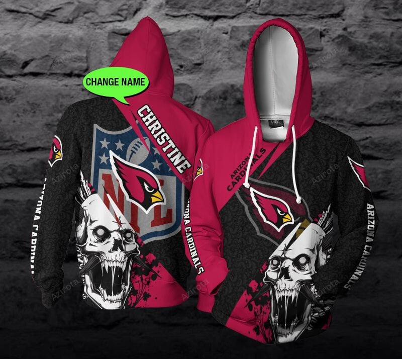 Personalized Arizona Cardinals Skull Custom Name 3d All Over Print Hoodie