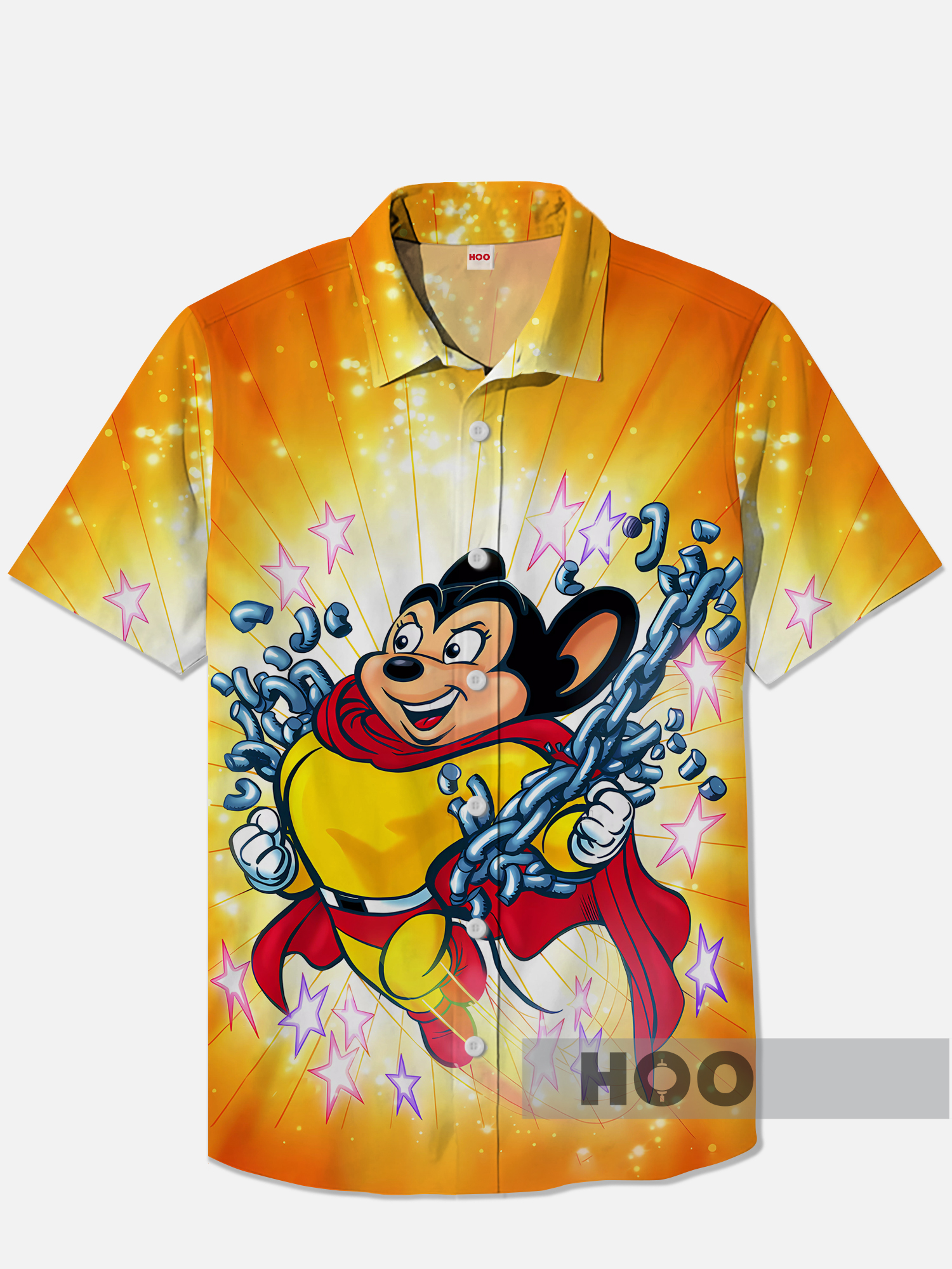 Retro Cartoon Super Mouse And Broken Chain Printing Hawaii Shirt