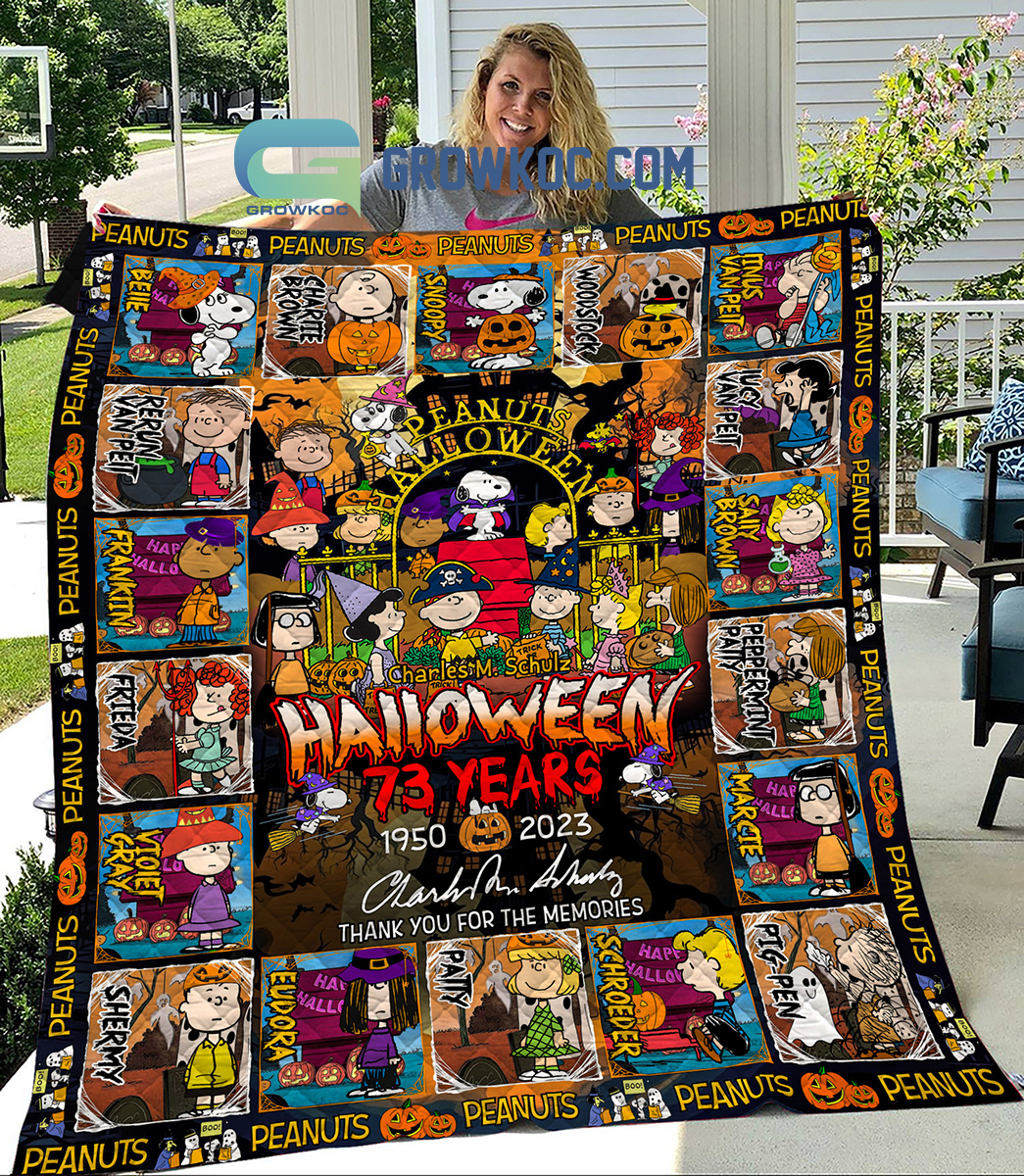 Snoopy Peanuts Halooween 73 Years 1950 2023 Memories Fleece Blanket Quilt