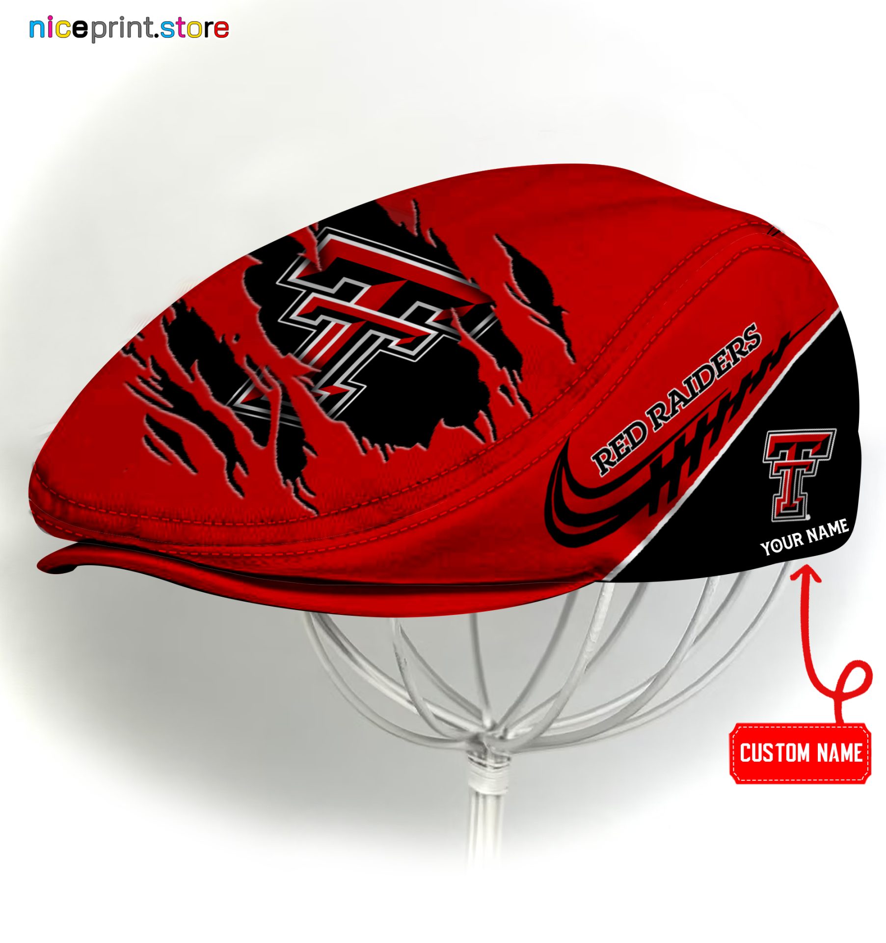 Texas Tech Red Raiders NCAA3 Flat Cap, NCAA Jeff Cap, NCAA Driving Cap Q22