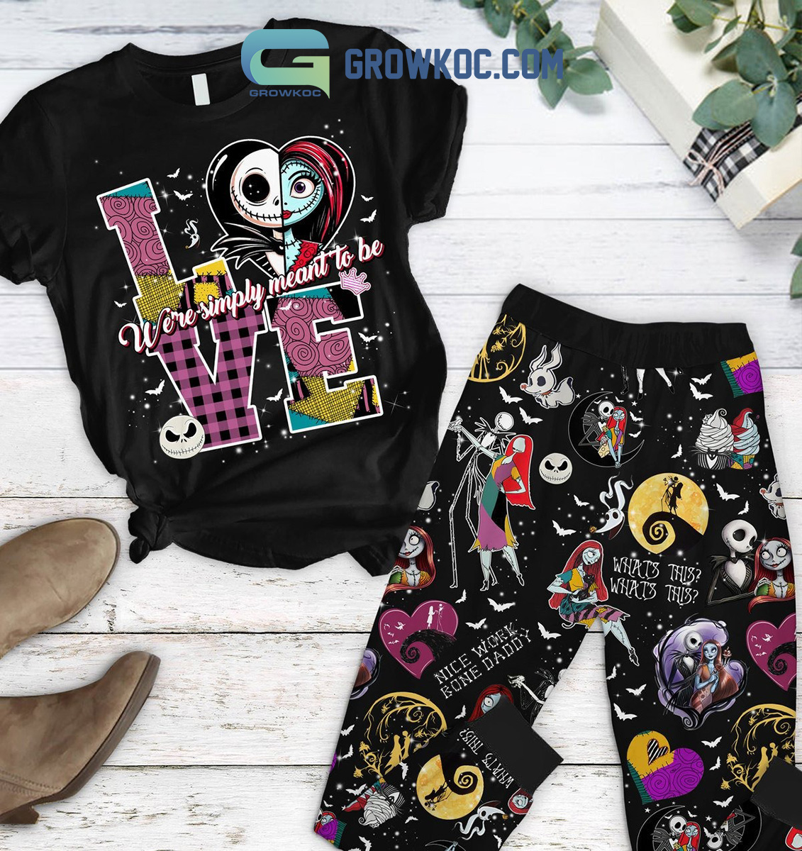 The Nightmare Before Christmas Couple Valentine Fleece Pajamas Set