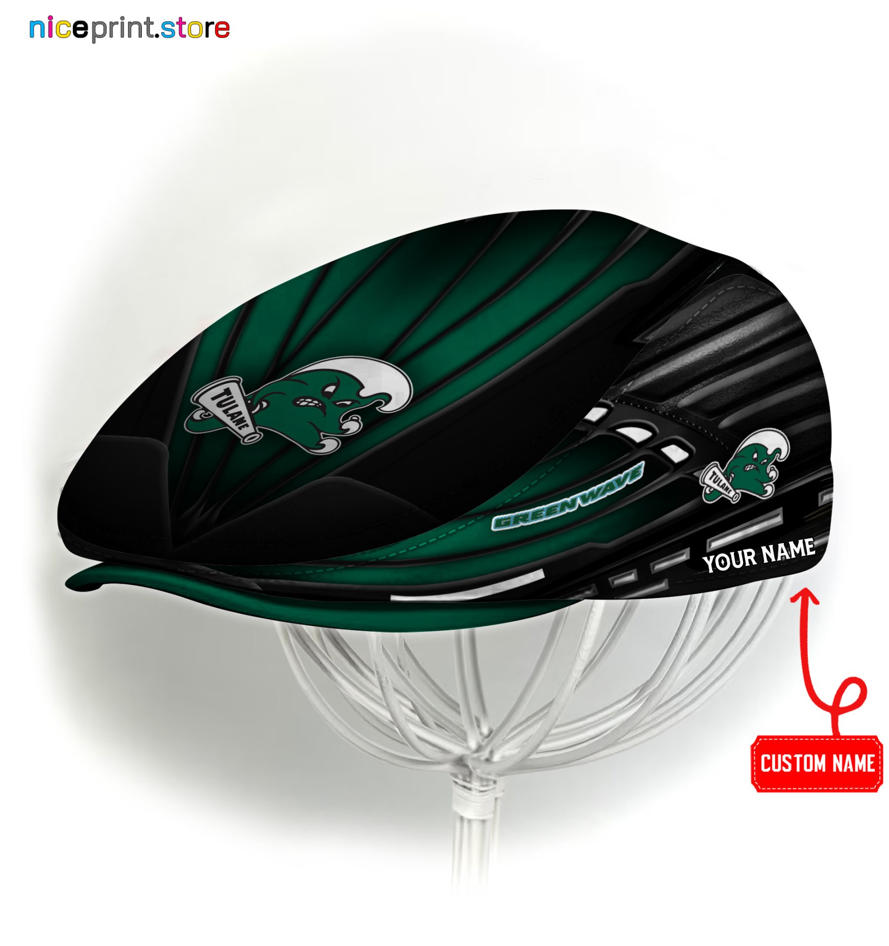 Tulane Green Wave NCAA2 Jeff Cap, Flat Cap, Driving Cap M45