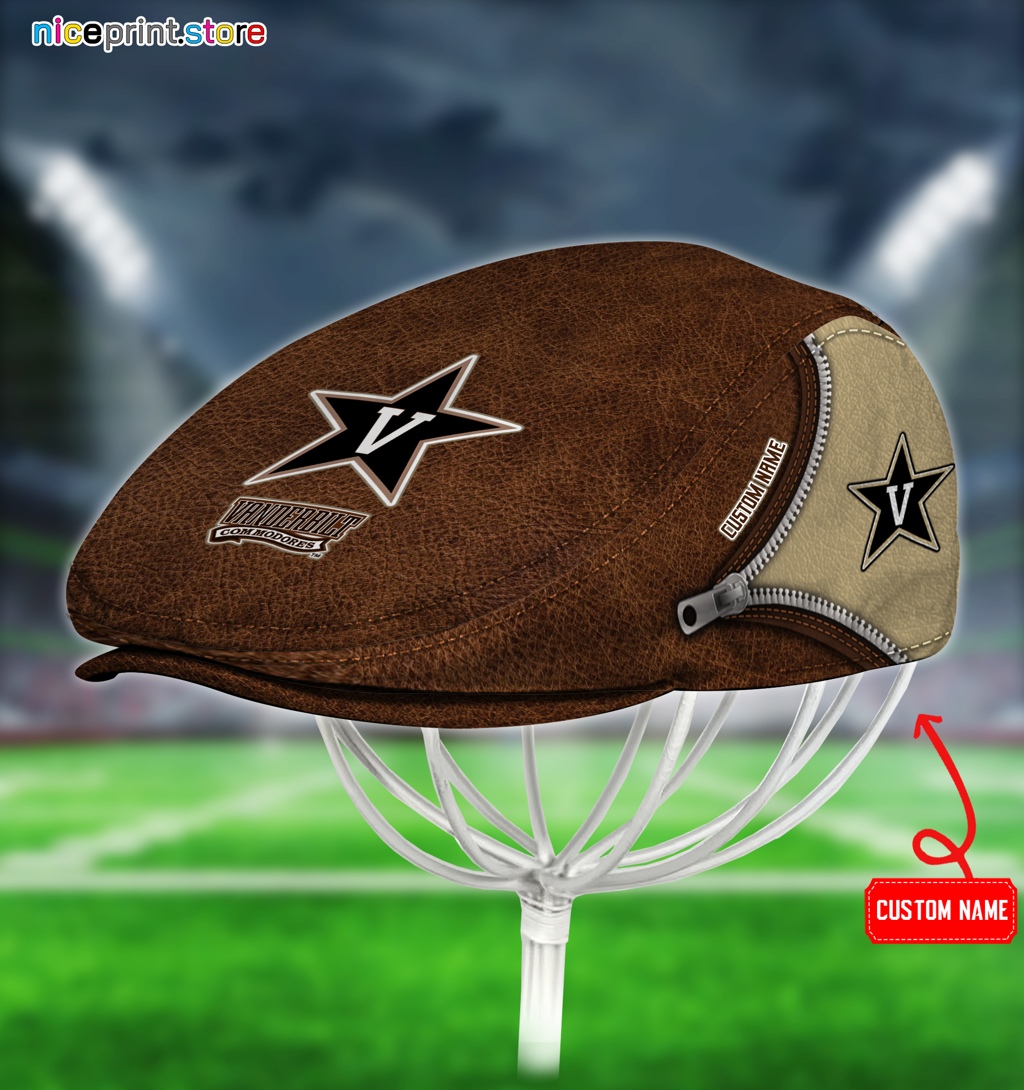 Vanderbilt Commodores NCAA3 Jeff Cap, Flat Cap, Driving Cap M27