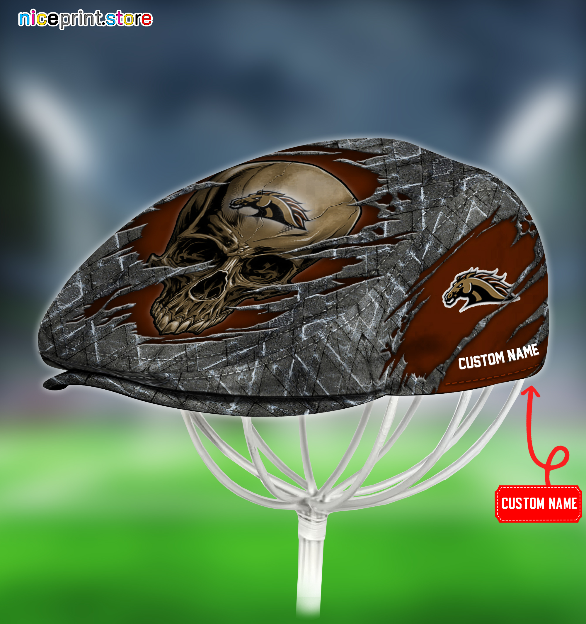 Western Michigan Broncos NCAA4 Skull Jeff Cap, Flat Cap, Driving Cap M65